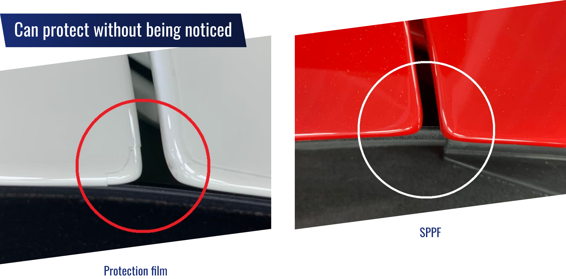 | Seam | ⚪︎ | × | ⚪︎ | A major weakness of PPF is the occurrence of seams and cut line. No protection from physical impact. Since SPPF is painted, it is possible to protect the body without any seams or cut line. |
